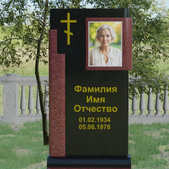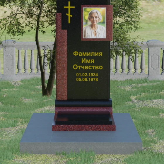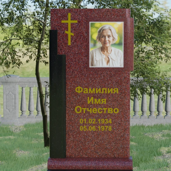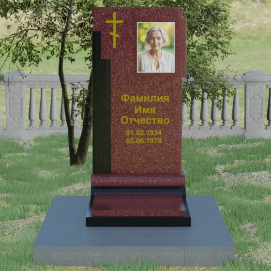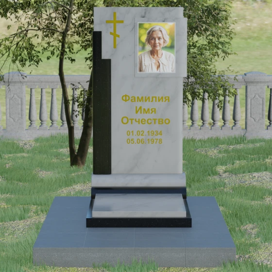 Кому подойдет: Данная модель является универсальной и достойной. Благодаря строгим линиям и возможности выбора цветовых сочетаний, она станет прекрасным выбором для оформления мужского захоронения, подчеркивая твердость характера и статус. В то же время, при использовании более светлых или теплых оттенков камня (например, Мансуровского гранита или мрамора Тассо), памятник приобретает мягкость и изящество, становясь трогательным символом памяти о женщине или дорогом родителе. Это выбор тех, кто ищет баланс между религиозными традициями и современной эстетикой мемориальной архитектуры.