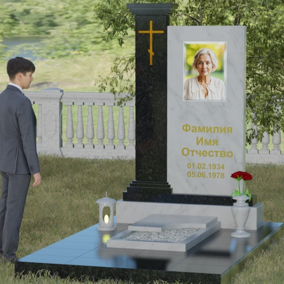 Кому подойдет: Данная модель является универсальной и будет одинаково уместна как для мужского, так и для женского захоронения. Ее часто выбирают для людей, которые при жизни отличались твердым характером, приверженностью традициям и духовными ценностями. Благодаря наличию православной символики и возможности выбора различных оттенков камня, мемориал станет достойным воплощением памяти о дорогом родителе, супруге или близком друге, превращая место скорби в пространство светлой памяти и глубокого уважения.