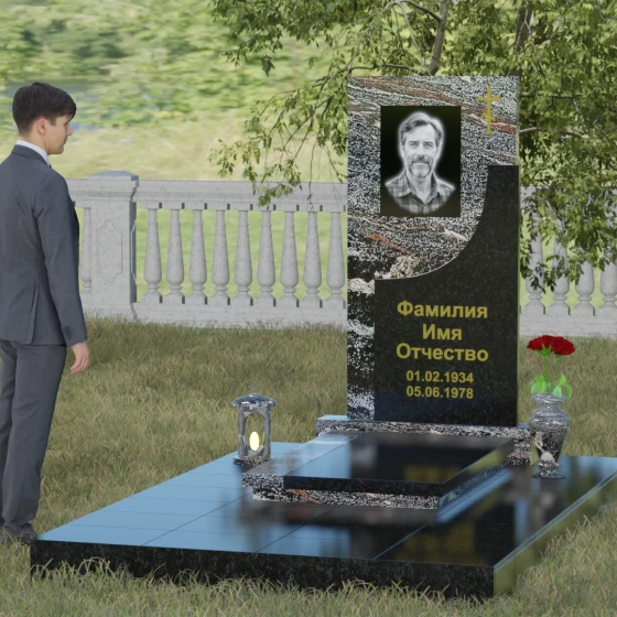 Модель Артикул 024 представляет собой законченное архитектурное решение. Стела установлена на массивный гранитный цоколь, который служит надежным фундаментом и придает всей конструкции необходимую устойчивость. Важной особенностью данного проекта является полное мощение участка: вместо открытого грунта используется сплошная надгробная плита. Это не только создает эстетически безупречный, аккуратный вид, но и значительно упрощает уход за местом захоронения, избавляя от необходимости борьбы с сорняками. В едином стиле с основным монументом выполнены дополнительные элементы декора: изящная каменная ваза, установленная на плите, позволяет приносить живые цветы, сохраняя гармонию композиции. Каменный бордюр по периметру участка четко очерчивает границы мемориала, превращая его в уединенное место для тихой молитвы и воспоминаний.