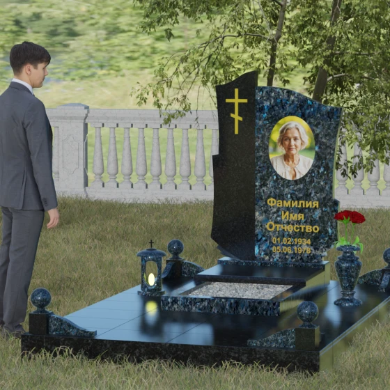 Мы понимаем, как важно передать индивидуальность ушедшего человека, поэтому данная модель доступна в 8 эксклюзивных цветовых решениях. Вы можете выбрать благородный черный гранит Габбро-диабаз, изысканный гранит Амфиболит с его неповторимым рисунком, глубокий Балтик Грин, мерцающий Блю Перл или насыщенный Дымовский. Для создания более теплых или контрастных композиций доступны яркий Лезниковский гранит, белоснежный Мансуровский или премиальный мрамор Тассо. Такое многообразие палитры позволяет подобрать камень, который будет максимально точно соответствовать характеру и жизненному пути дорогого вам человека.