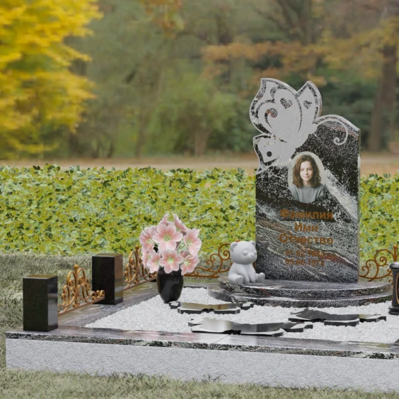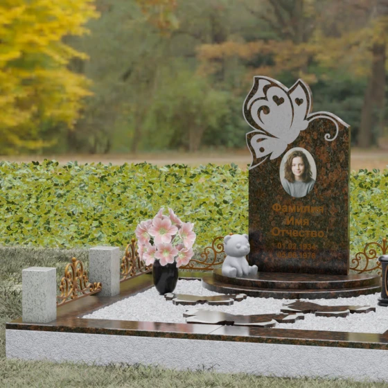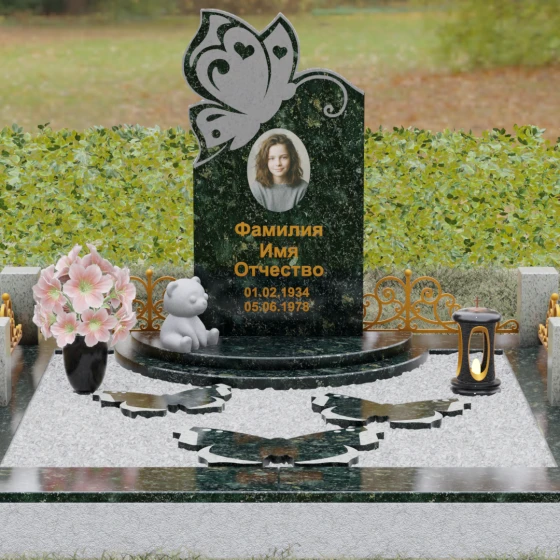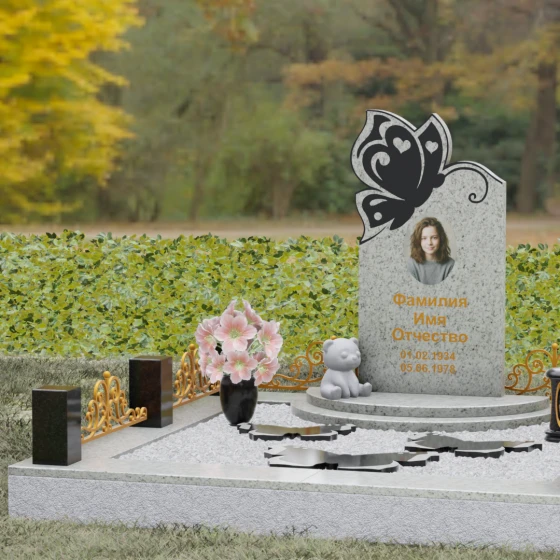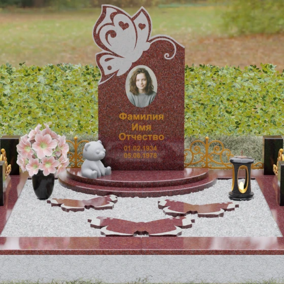 Кому подойдет: Это ритуальное изделие чаще всего выбирают для оформления захоронений молодых женщин или детей. Образ бабочки в мировой культуре неразрывно связан с преображением и вечной жизнью, что помогает близким найти крупицу утешения в эстетике и светлом символизме. Благодаря сочетанию сложной ручной резьбы и надежности природного камня, этот ансамбль станет достойным воплощением вашей любви, выделяясь на фоне типовых форм своей одухотворенностью и качеством исполнения.