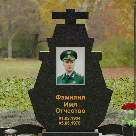 Геометрия стелы диктует свои правила оформления: центральное прямоугольное поле идеально подходит для размещения крупного фотокерамического портрета или классической гравировки. Ниже, под портретом, достаточно места для нанесения фамилии, имени и дат крупным, читаемым шрифтом, который может быть покрыт сусальным золотом или специальной художественной краской для лучшей видимости на фоне камня. Ступенчатая форма памятника сама по себе является мощным декоративным элементом, поэтому она не требует избытка дополнительных рисунков, сохраняя эстетику высокого стиля и сдержанного достоинства.