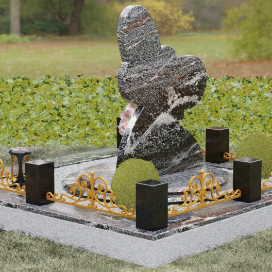 Возможность исполнения данного надгробия в 8 различных цветовых решениях позволяет придать ему уникальный характер, соответствующий личности ушедшего. Глубокий черный гранит Габбро-диабаз подчеркнет строгость и вечность, изумрудный Балтик грин или мерцающий Блю Перл добавят композиции мистической глубины, а белоснежный мрамор Тассо или светлый Мансуровский гранит наполнят пространство ощущением чистоты и небесного покоя. Также доступны варианты из изысканного Амфиболита, благородного Дымовского и насыщенного красного Лезниковского гранита.