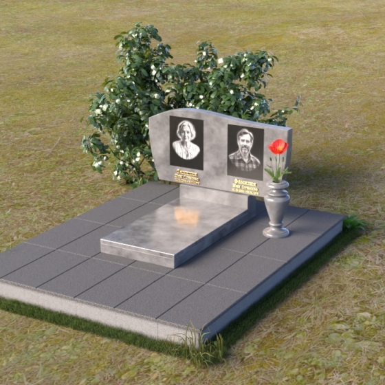 Оформление: Для этой формы стелы рекомендуется выбирать портреты с четкими контурами, чтобы гравировка максимально точно передала образ усопшего. Имена и даты рождения можно разместить под портретами, используя элегантный шрифт с золотым напылением, что придаст ритуальному изделию дополнительную торжественность.