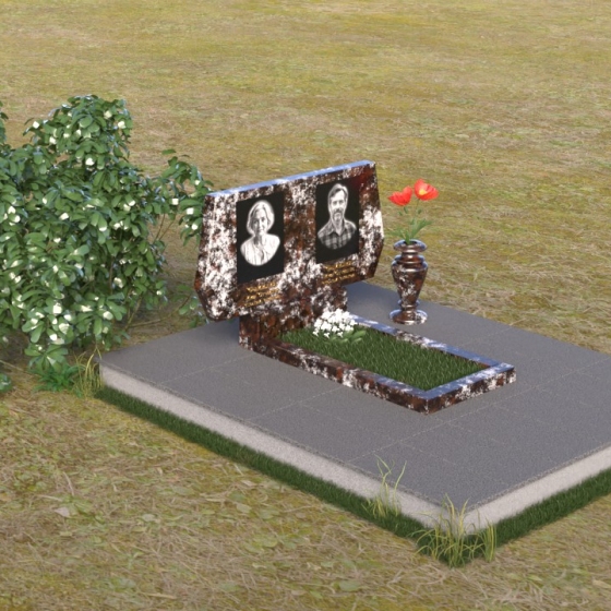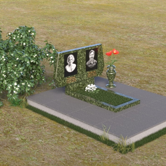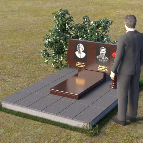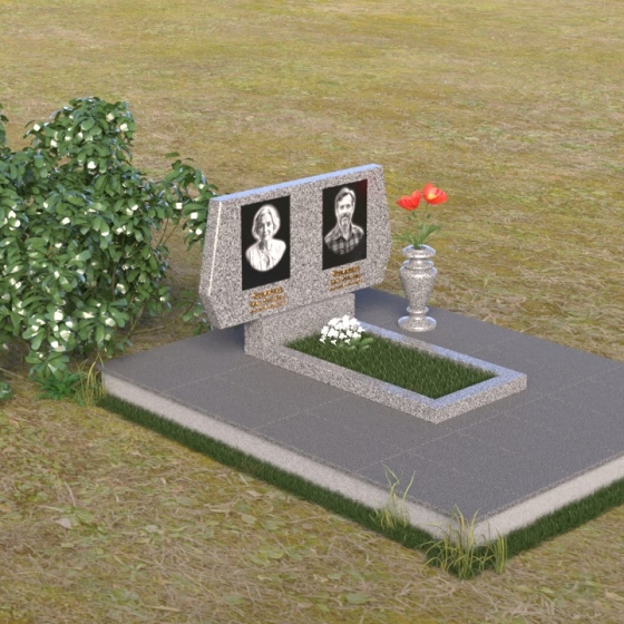 Представляем вам ритуальное изделие – памятник на могилу (Артикул: ПГ018), архитектурное решение, в котором строгость линий сочетается с глубоким символизмом. Это не просто надгробие, а осязаемое воплощение уважения и вечной памяти об ушедшем человеке. Стела, выполненная в форме сдержанного прямоугольника, слегка расширяющегося кверху, символизирует восхождение души к небесам. Грани камня тщательно обработаны, создавая игру света и тени, подчеркивающую монументальность и значимость этого места памяти. Слева и справа, верхние углы стелы имеют элегантные скосы, смягчающие строгость формы и придающие ей утонченность. На зеркальной поверхности камня выгравированы портреты усопших, их имена и даты жизни, выполненные с безупречной точностью и вниманием к деталям. Под портретами располагаются лаконичные надписи, выполненные строгим шрифтом, добавляющие памятнику сдержанности и достоинства. Дополнительная горизонтальная плита, расположенная перед стелой, создает ощущение завершенности и служит местом для возложения цветов или свечей. Этот элемент композиции выполнен в той же стилистике, что и основная стела, поддерживая общую гармонию и пропорциональность мемориального комплекса.