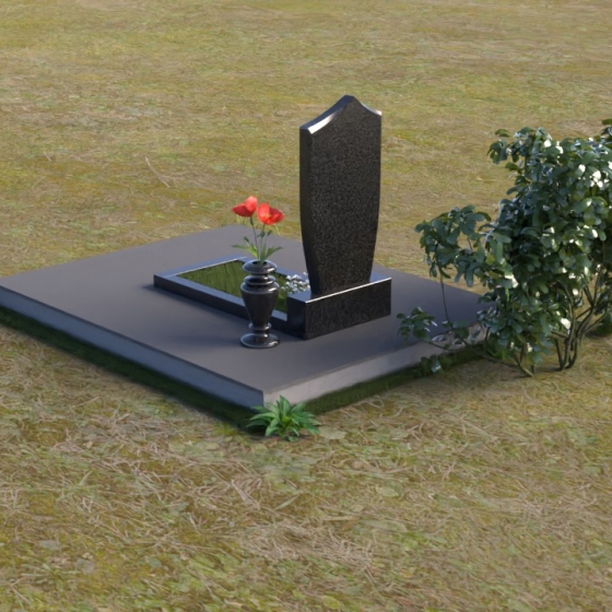 Этот ритуальное изделие сочетает в себе строгость линий и элегантность формы, создавая атмосферу умиротворения и светлой памяти. Стела, выполненная в форме щита с мягко скругленным верхом, символизирует защиту и покровительство. Зеркальная полировка черного камня создает эффект глубины и торжественности, отражая окружающий мир и напоминая о вечности бытия. Четкие, выверенные пропорции и сдержанный дизайн делают этот памятник достойным обрамлением для воспоминаний о близком человеке.